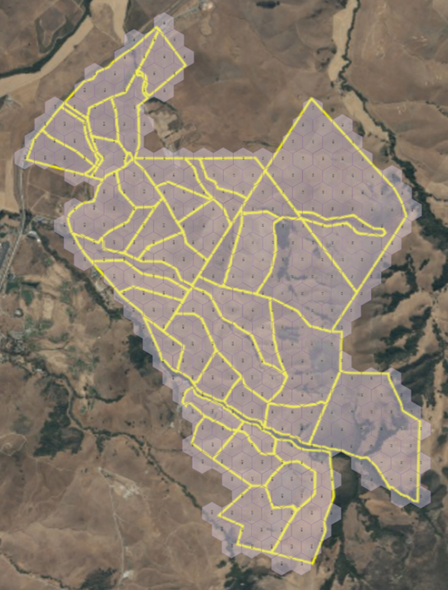Hexagonal tiling over Walters and Escuela Ranches.