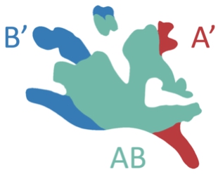 Illustration of a geometry partitioning result for a polygon geometry: each color represents a different building block. A single building block may contain disconnected areas.