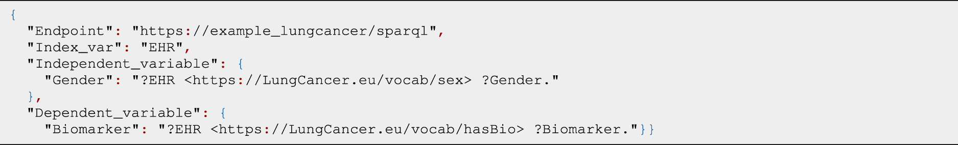 To exemplify different components of the InterpretME architecture, we have used the following running example (Fig. 7). In our GitHub repository, we provide a comparable example with the French Royalty KG14. Because of privacy issues, the Lung Cancer KG cannot be published, but this example allows for reproducing our results.