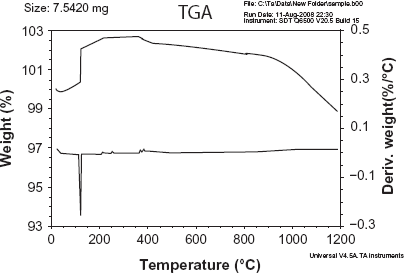 Thermo gravimetric analysis of the hydroxyapatite powder sintered at 1150 °C.