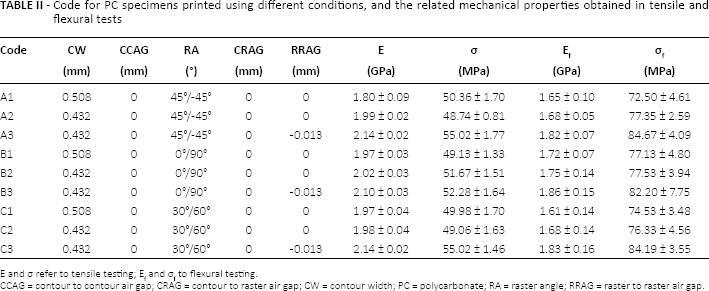 Mechanical properties of PC printed specimens: effect of printing parameters