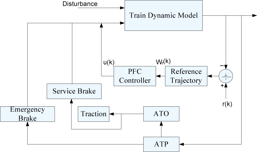 Introduced by Richalet and ADERSA, predictive function control (PFC) is efficiently applied in industrial systems, especially in fast systems [32]. Generalized predicative control (GPC) [33], dynamic matrix control (DMC) [34], PFC [35,36] and model predictive heuristic control (MPHC) [37] follow the same principles, but differ in the model structure and computational complexity. However, DMC and GPC need high computational complexity due to matrix computations and inversions. The control command of PFC does not minimize a cost function. PFC avoids high dimensional matrix computations and inversions, which can reduce the computational time [38], and this is especially important for a fast dynamic system. The robustness in PFC controllers is also important for time varying dynamical systems such as CBTC systems.