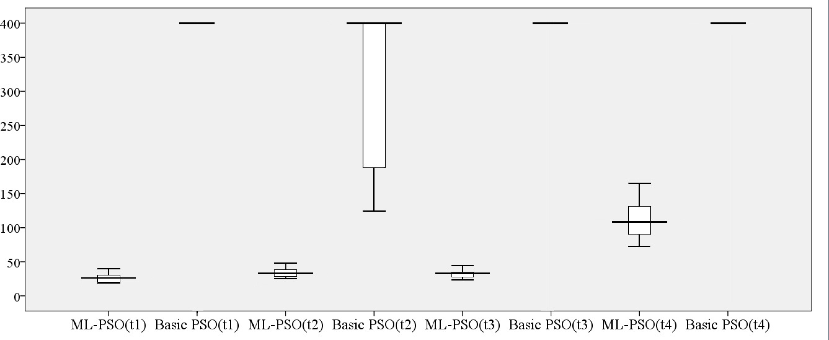Another strategy to evaluate the search time of ML-PSO and basic PSO in this environment is illustrated in Figure 8. Figure 8 represents the search time (number of iterations) the ML-PSO and the basic PSO needed to find the target.